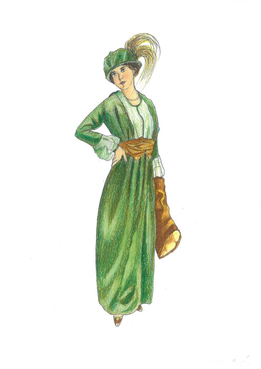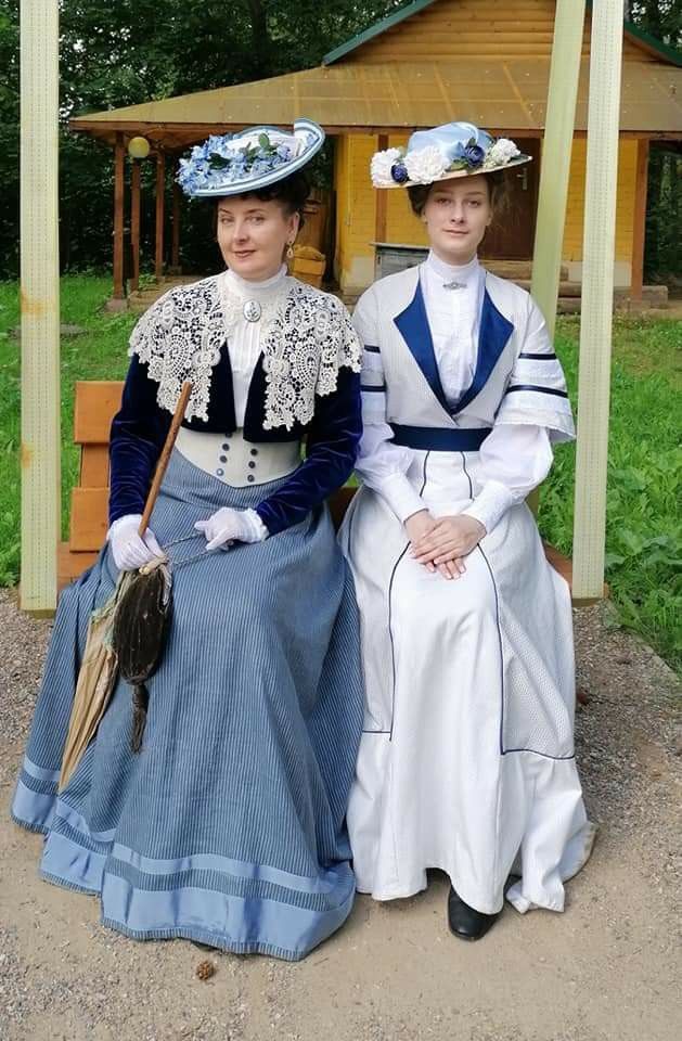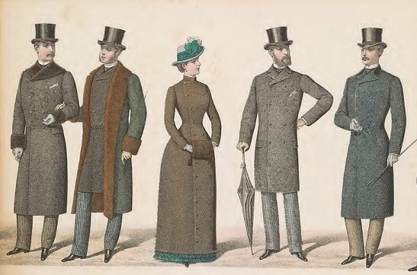 Dámy nosily dlouhé sukně, halenky ke krku, velké šátky přes ramena a klobouky, služky a pradleny dlouhé sukně, zástěru a bílý čepec.