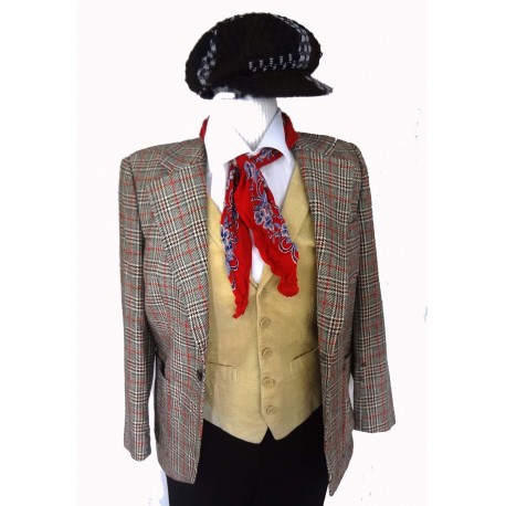 klobouk. Pepíci měli kalhoty s proužkem, kostkou, stejně tak i košile. Šátek byl