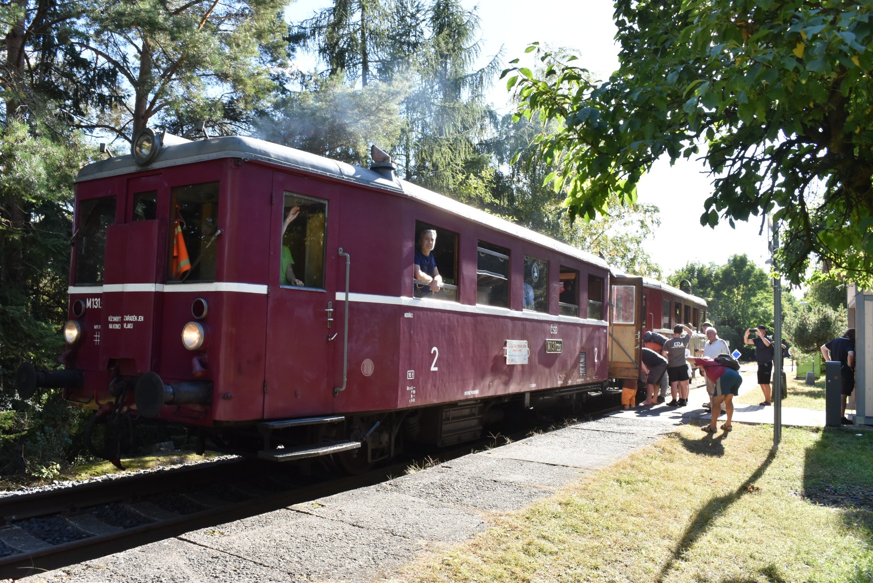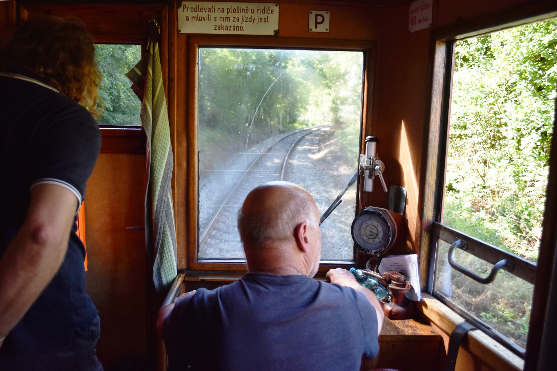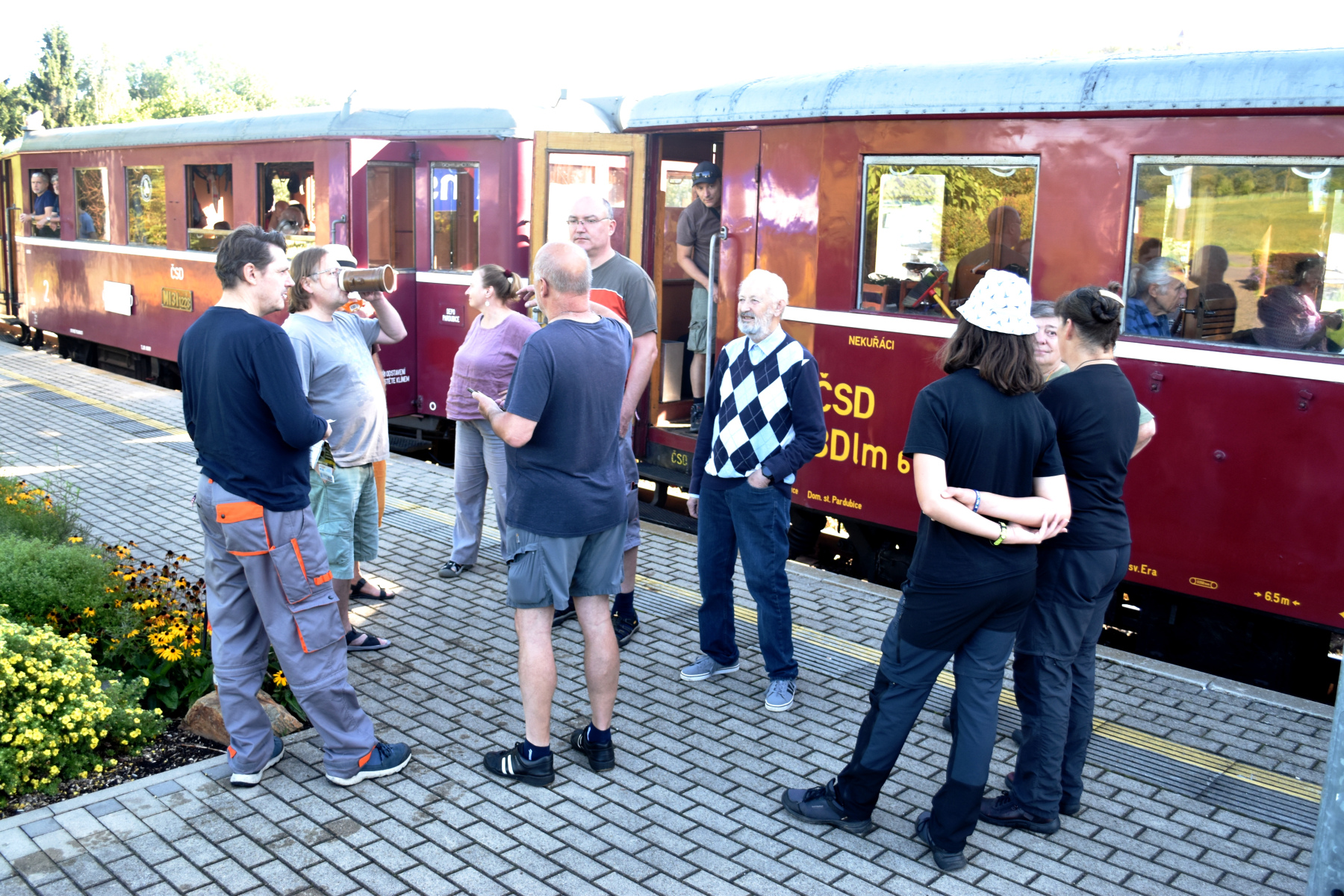 Stejně jako v minulých letech jsme jeli historickým červeným motoráčkem zvaným Hurvínek i s vlečňákem, neboť nás bylo 62 pasažérů. Motorový vůz M131.1228 byl vyroben ve Vagónce Studénka v roce 1951 a je ve vlastnictví Pardubického spolku historie železniční dopravy. Dopravcem, který pro nás jízdu zajišťuje, je železniční spolek Lokálka Group Rokycany se svým šéfem Jirkou Svobodou, který motorák sám celou cestu řídil.