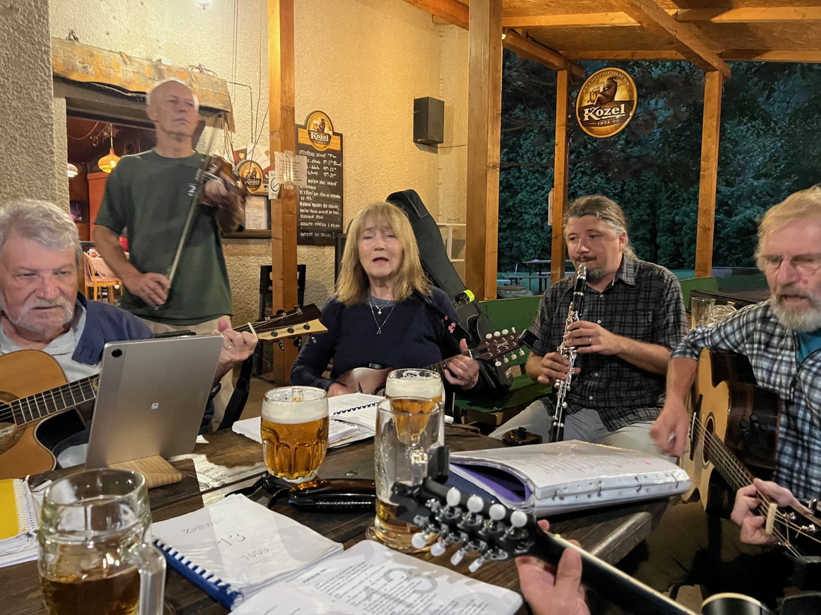 Patnáctka tento rok opět uspořádala v červenci, srpnu a září Letní open hrací sleziny v zahradní restauraci U Železné panny v Motole. Máme radost, že naše pozvání přijali oslovení muzikanti ze spřátelených tras. Jako vždy v létě, když jsou všichni někde rozlítaní, dalo trochu práce dát muziku dohromady, ale vždy se sešlo víc než deset muzikantů – několik kytar, mandolíny, housle, nějaké foukačky, někdy basa, klávesy, klarinet, příčná nebo zobcová flétna… K tomu nadšené zpěvné hlasy Patnáctky a jejích hostů. Bylo to vždycky milé a přátelské hudební setkání, byť někteří muzikanti spolu hráli poprvé a sešli se třeba vyznavači různých žánrů – od klasických kotlíků, přes swing a blues po lehký bigbít. Sleziny navštívil i Majitel s chotí a byl s produkcí spokojen :-).
