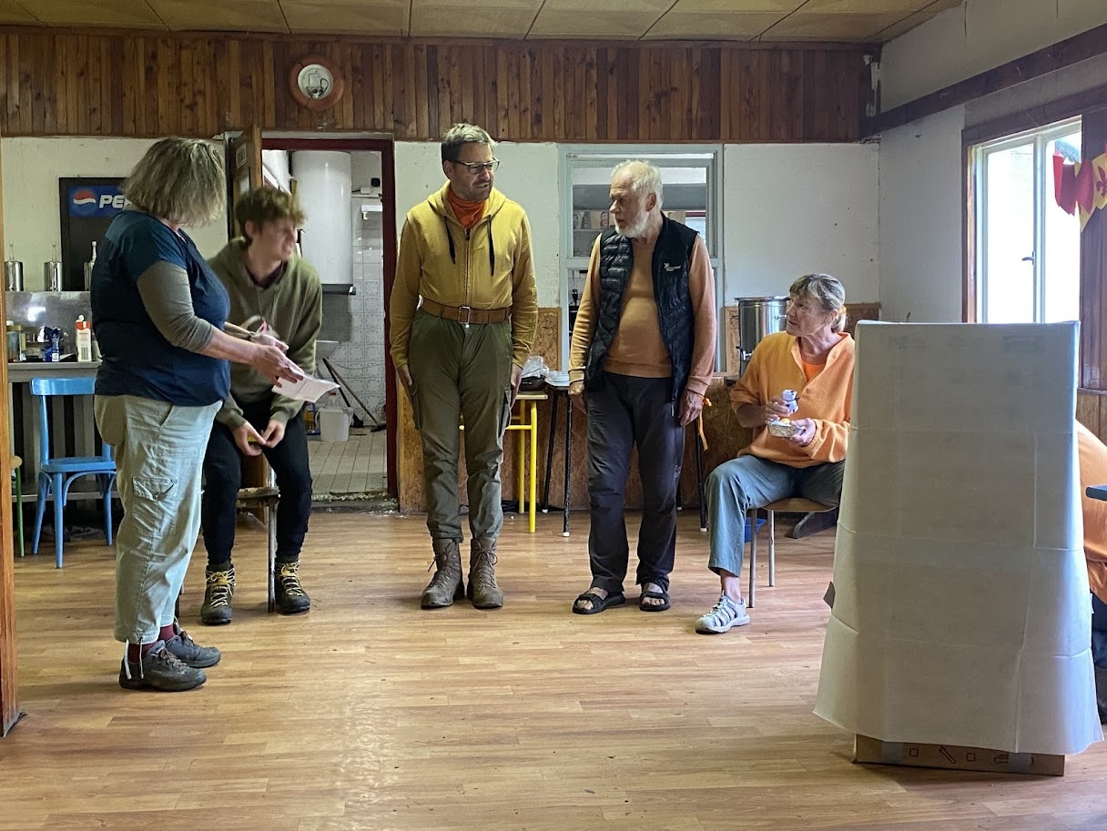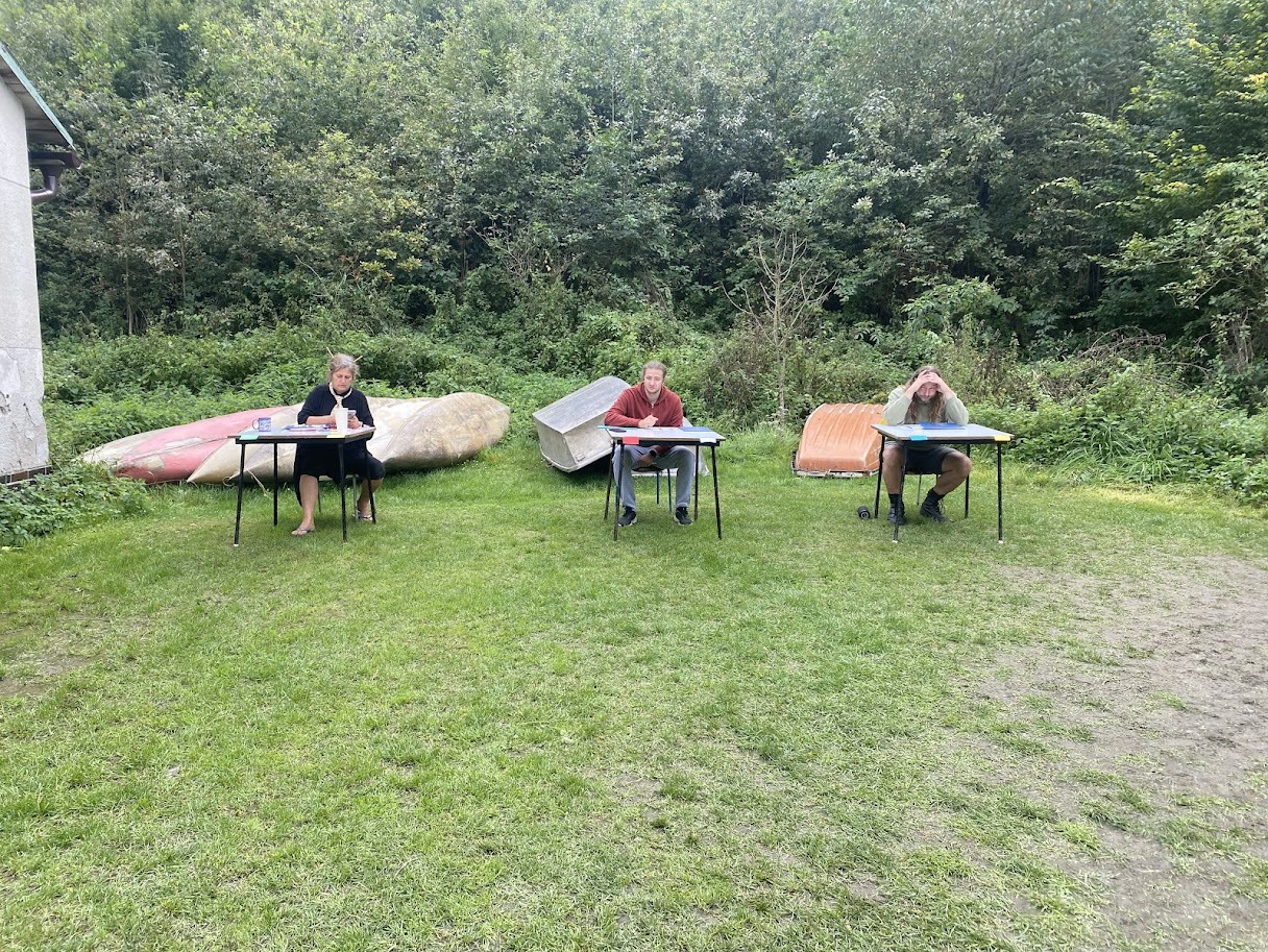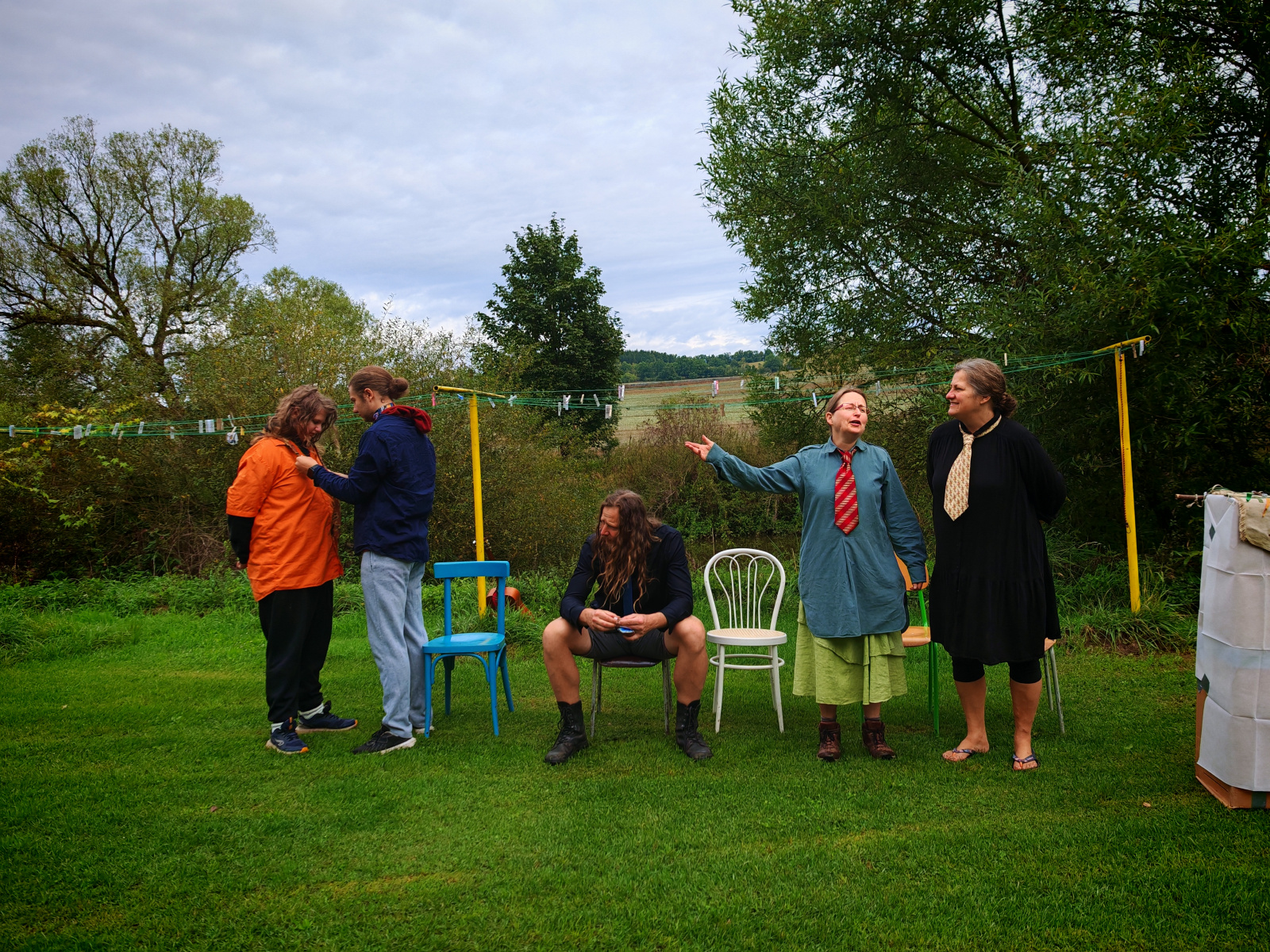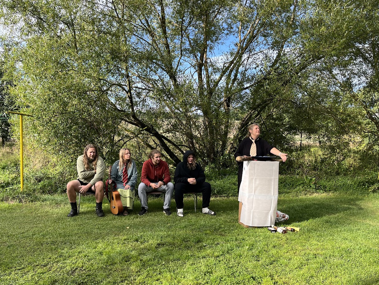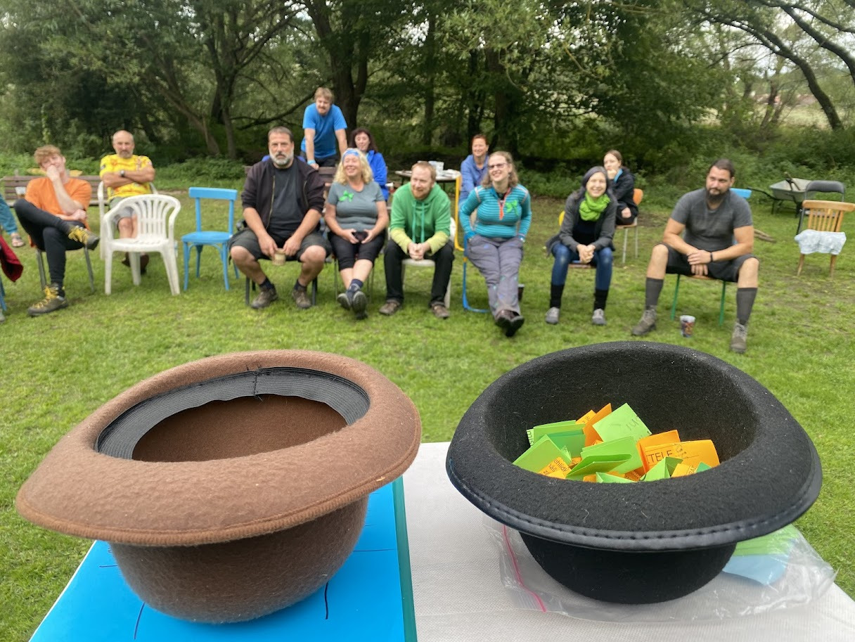 Ráno zase deštivé, ale Janina kytara a zpěv všechny ze stanů i chatek vylákaly do jídelny – na teplé nápoje, polévku i česnekovou pomazánku. Následovala pomoc s bramborami a cibulí a drobné váhání, zda se dramatická tvorba odehraje uvnitř, nebo venku. Hrajeme uvnitř – 6 představení, každé prezentuje 5 zásad nebo typických prvků z divadelní tvorby Járy Cimrmana. Nevím jak vy, ale já se tedy bavila náramně.