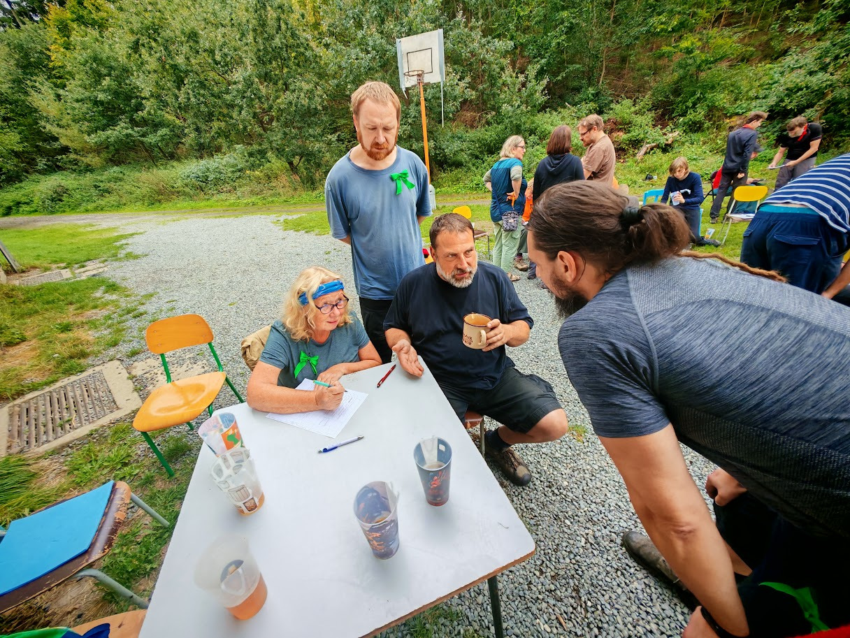 Malá přestávka a přesouváme se do informačního šapitó. Informace proudí pouze drátově. Jeden z týmů dokázal správně přenést všech 21 otázek a získat zpět 21 správných odpovědí. V šapitó to šumělo – myslím, že by měl Cimrman radost. Zklamáním pro někoho mohla být absence zavináčů…