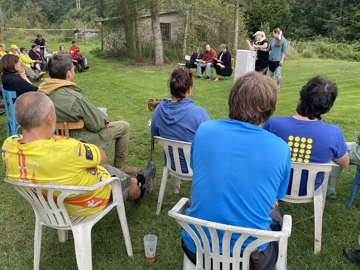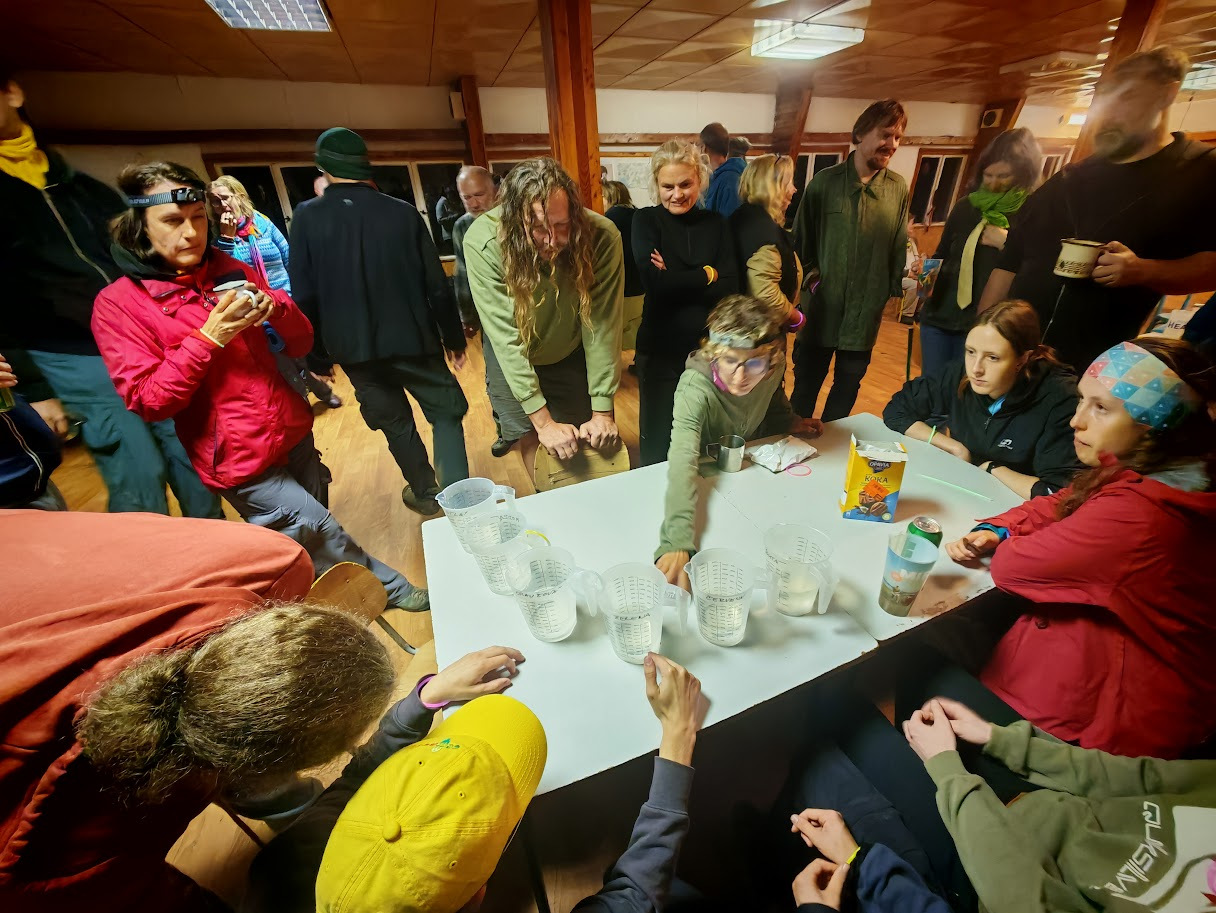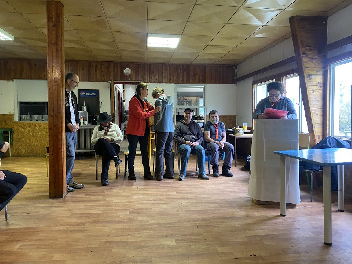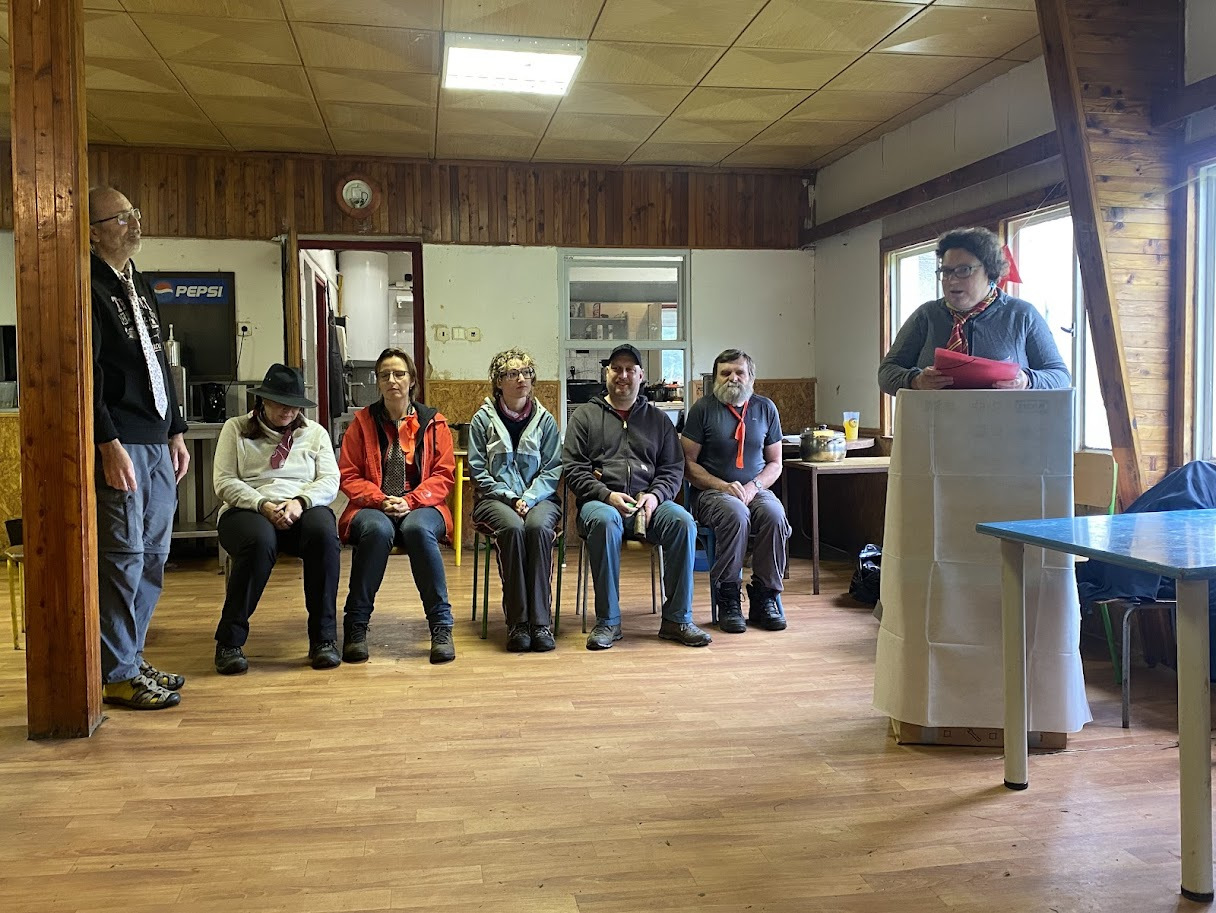 Přišel čas na úklid a balení. Díky všem jsme to zvládli. Naposledy tedy vytahujeme řenický pultík, zazpíváme si, rozdělíme ceny a pogratulujeme všem účastníkům. Pochodeň s vlajkou převzala za trasu 23 Fela se Sašákem – už se všichni těšíme.