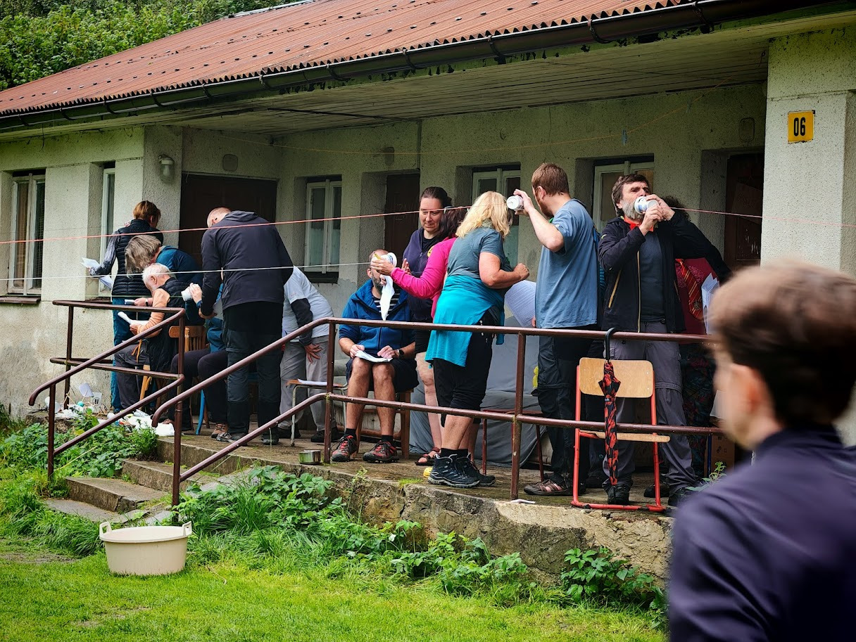 Vezmu to popořádku. Můj klasický stres, že se něco nepovede, ze mě spadl hned při vstupu do hospody, kde to žilo. Hráli jste, zpívali, klábosili – zkrátka pohoda. Následně přišla ještě obava, proč si tak dlouho „užíváte“ Výlet s překvapením. Všechny kontroly jste úspěšně našli a popasovali jste se i se záměnou stromu na nádvoří zámku a nikdo nepadl do rány myslivcům. První den zakončujeme kolem čtvrté hodiny u ohýnku.