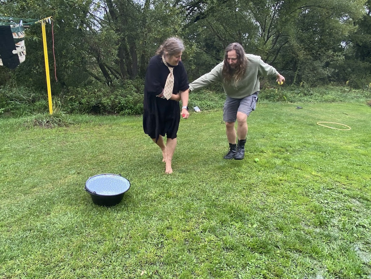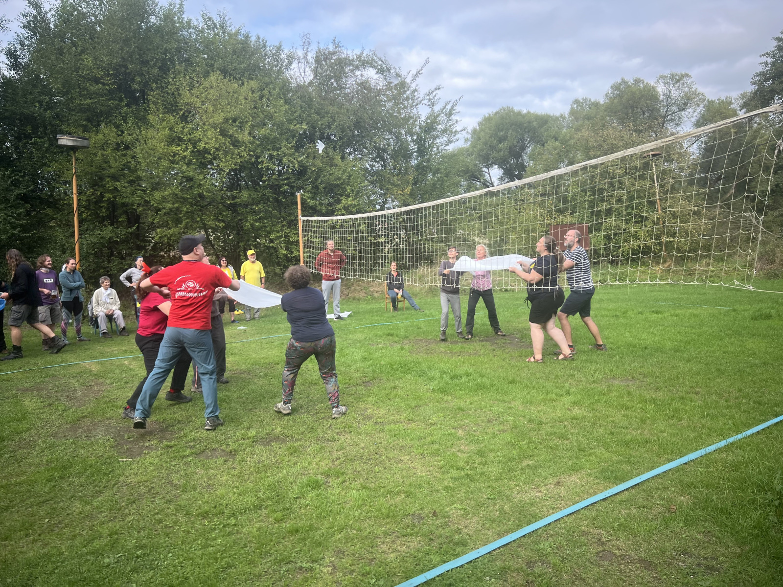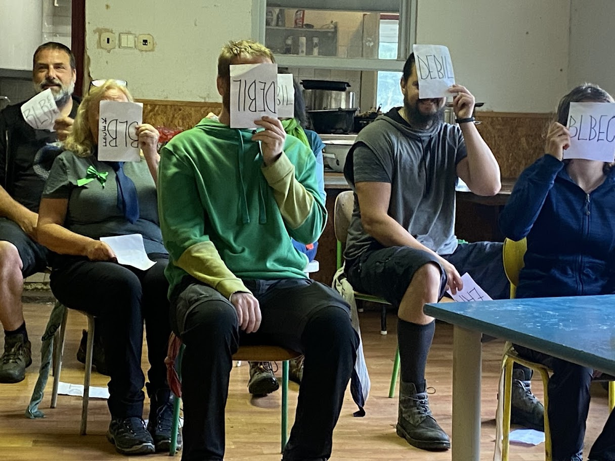 Odpoledne pokračovalo v intelektuálně-sportovním duchu. Vyzkoušeli jste si licitovanou pantomimu a vemínkovanou s výměnou „mečů“ (lapacích prostěradel). Vaše výkony při pantomimě byly nepřekonatelné, bavilo mě vaše licitování a hravost. U vemínek jsem nebyla, ale doléhal k nám smích.