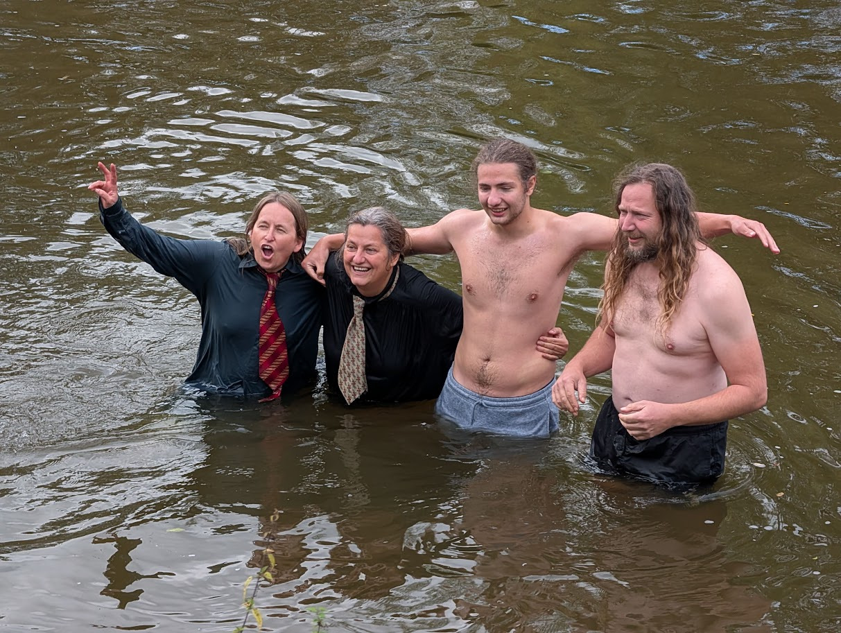 Víme, že součástí pořádání je i “koupel pořadatelů”. Tak jsme tedy i my vlezli do studené Sázavy. A právě v ten moment přijel i autobus. Ano, přijel až do tábora. Nakládáme, máváme a jdeme naložit i pořadatelské krámy a předat tábor.