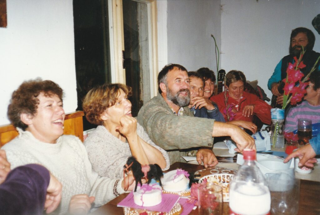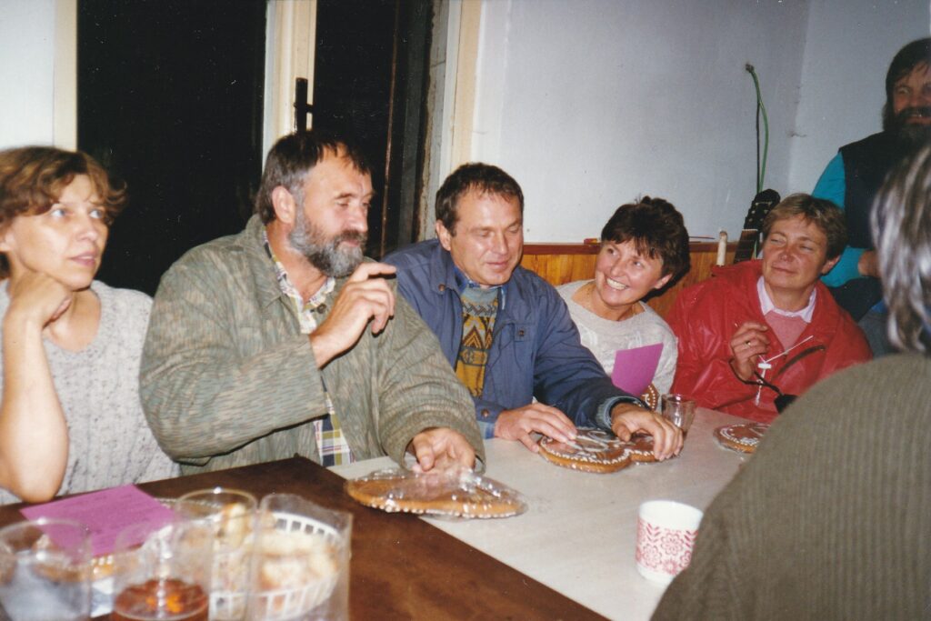 Ten sedící fousatej mužskej je Jirka Mokrejš při svých padesátinách před třiceti lety.