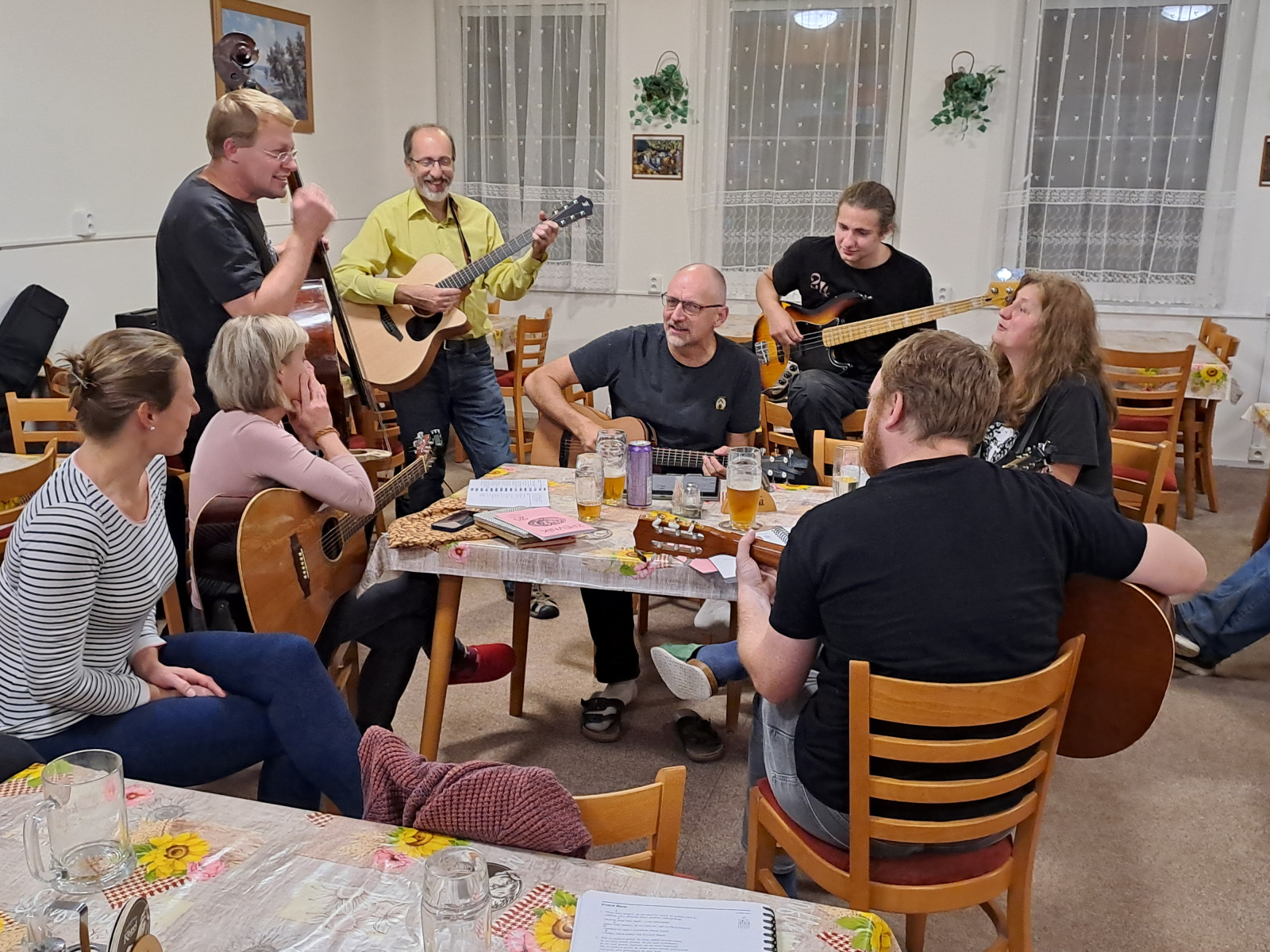 Ráno po snídani se ještě hrálo a zpívalo, někdo šel na výlet a početná skupinka se pustila do nohejbalu. Naši mladí nám pomohli s nohejbalem a na vedlejším kurtu si pinkali nebo hráli ringo.