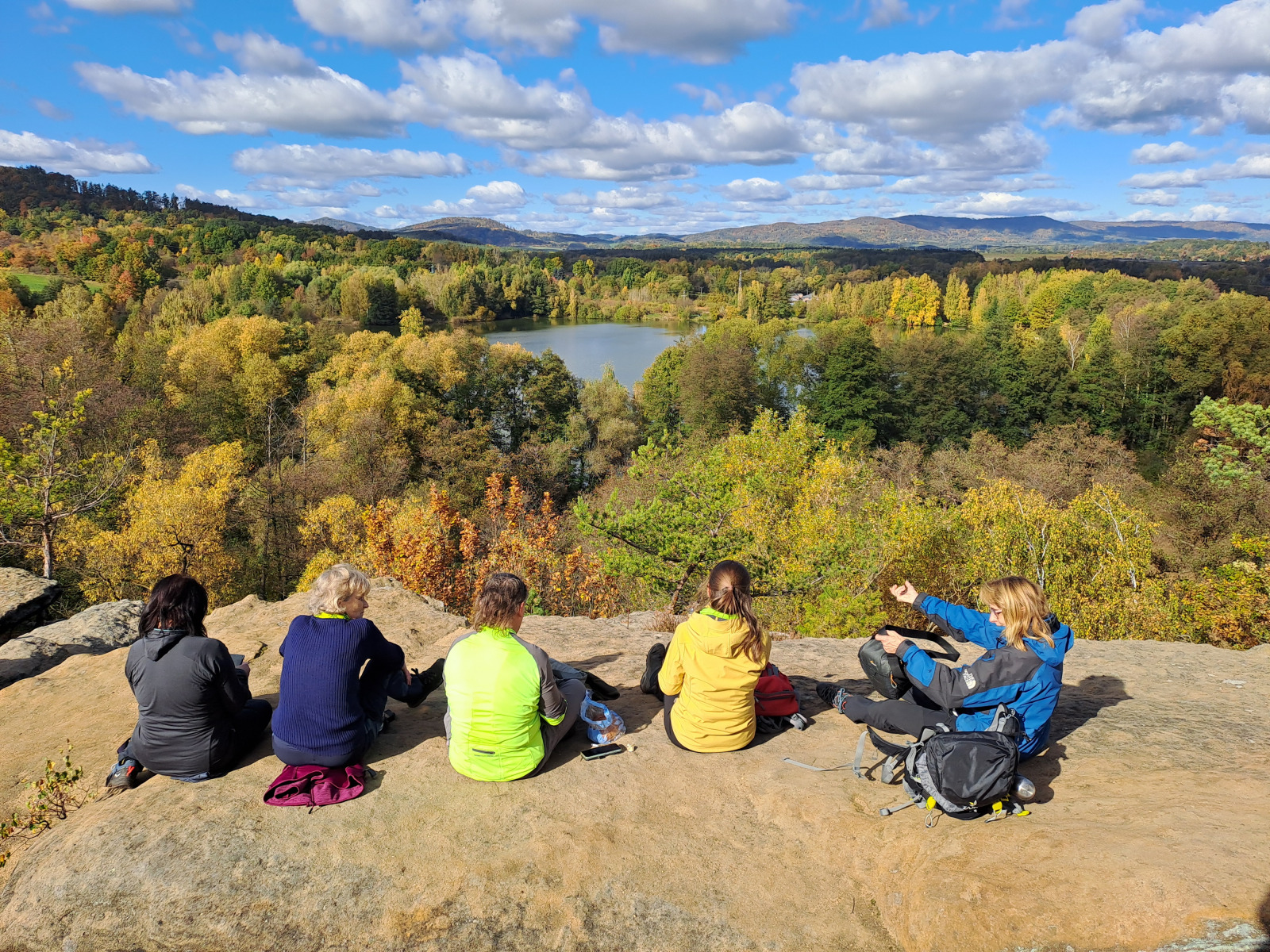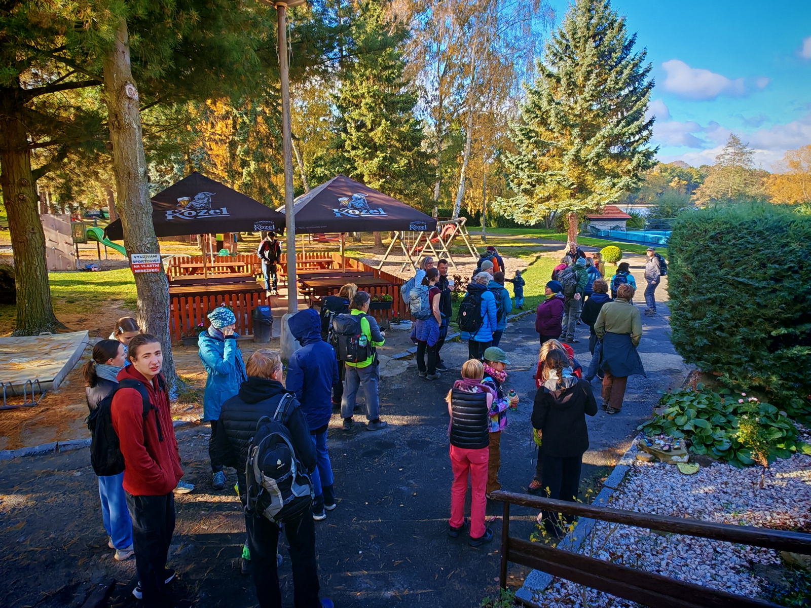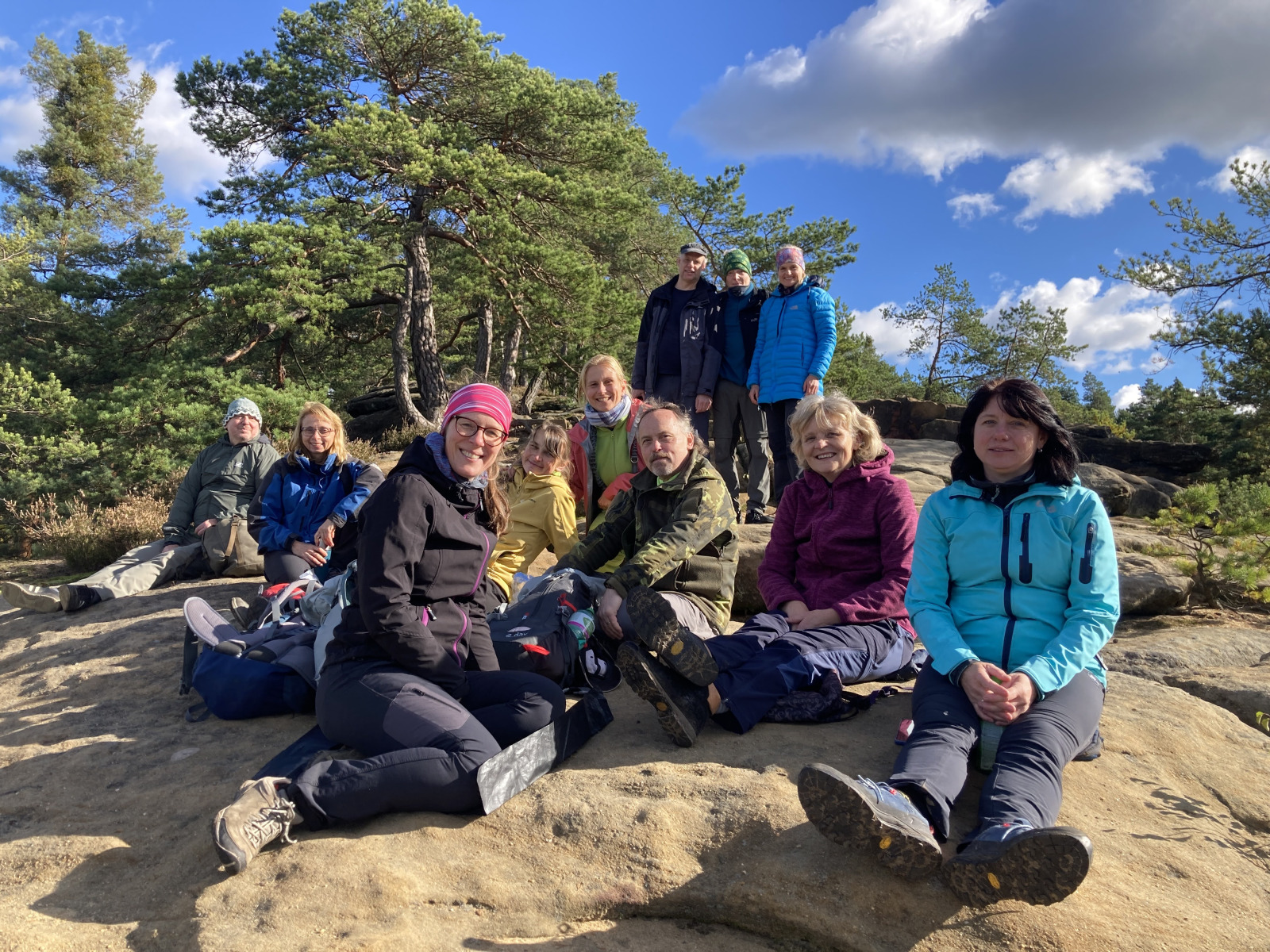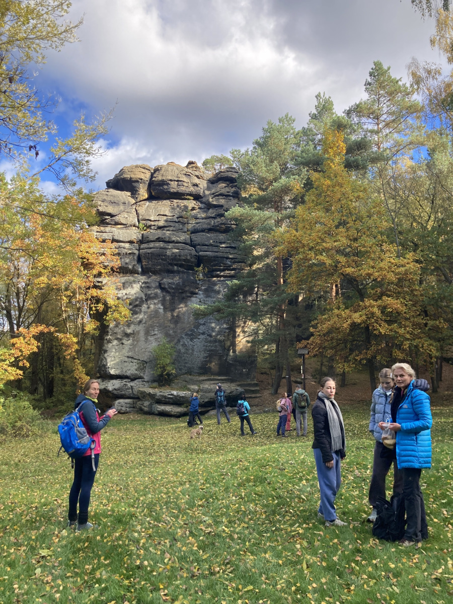 Na bohaté snídani sklidily největší ohlas asi lívance se vším možným. Počasí nám přeje, tak tedy vyrážíme na výlet směr Peklo. Ještě než vyrazíme, stíháme ještě skupinové foto. Dělíme se v Zahrádkách, kde se naše malá skupinka odděluje do hospody a ostatní pokračují do Pekla. A co se stalo tam, znám už jen z fotografií.