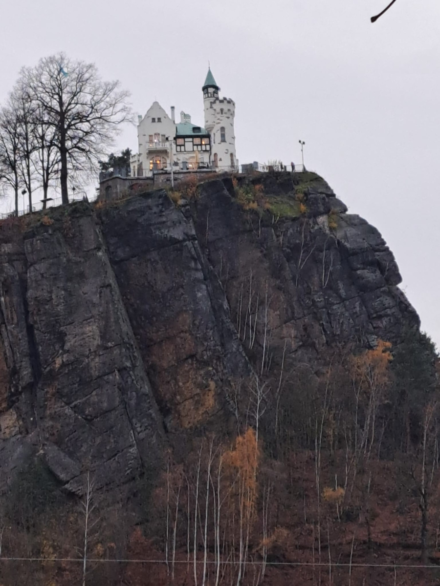 Děčínem.Trasa je poměrně prudká – převýšení značné, ale výhledy stojí za to. Na vrcholu