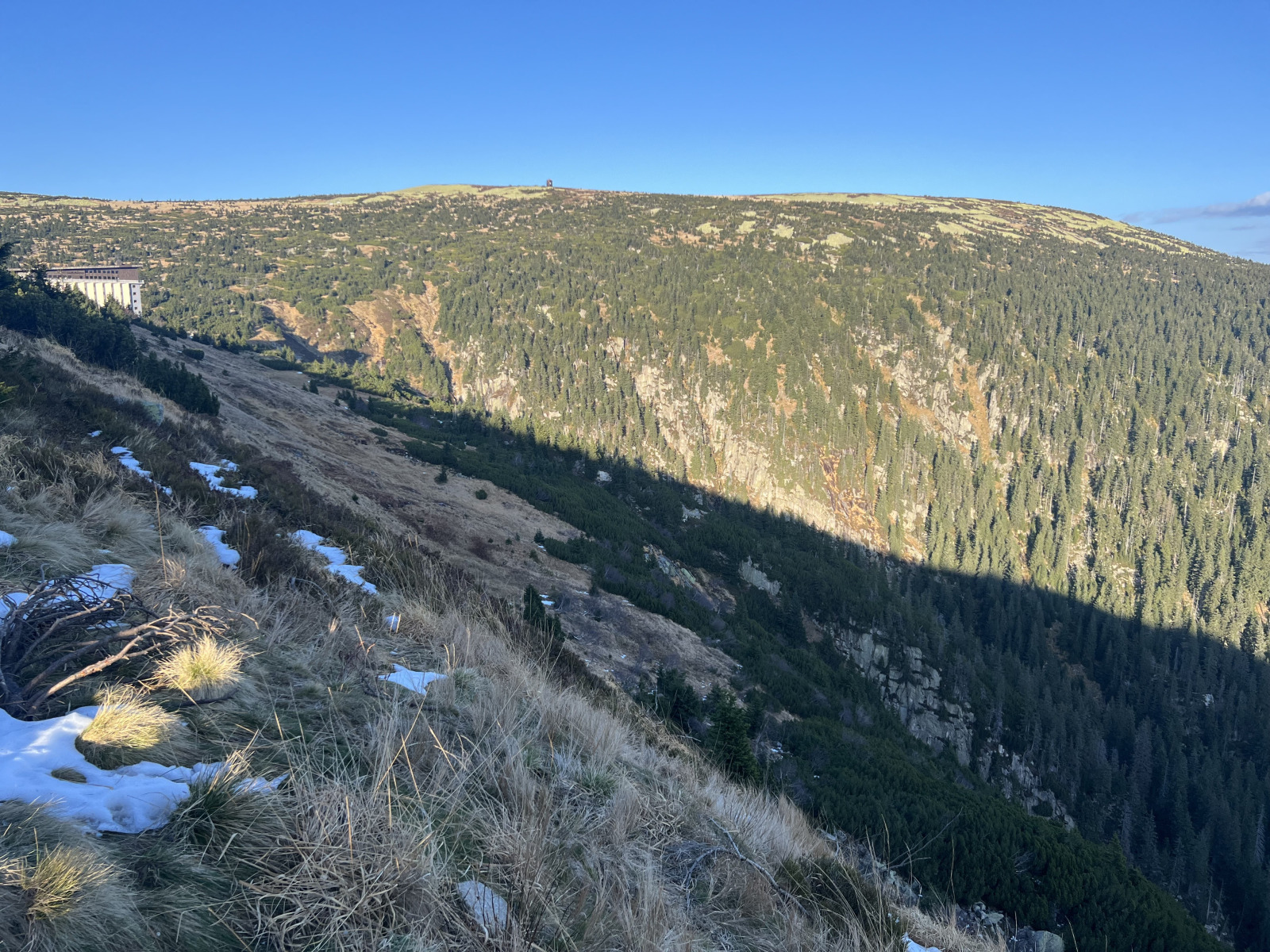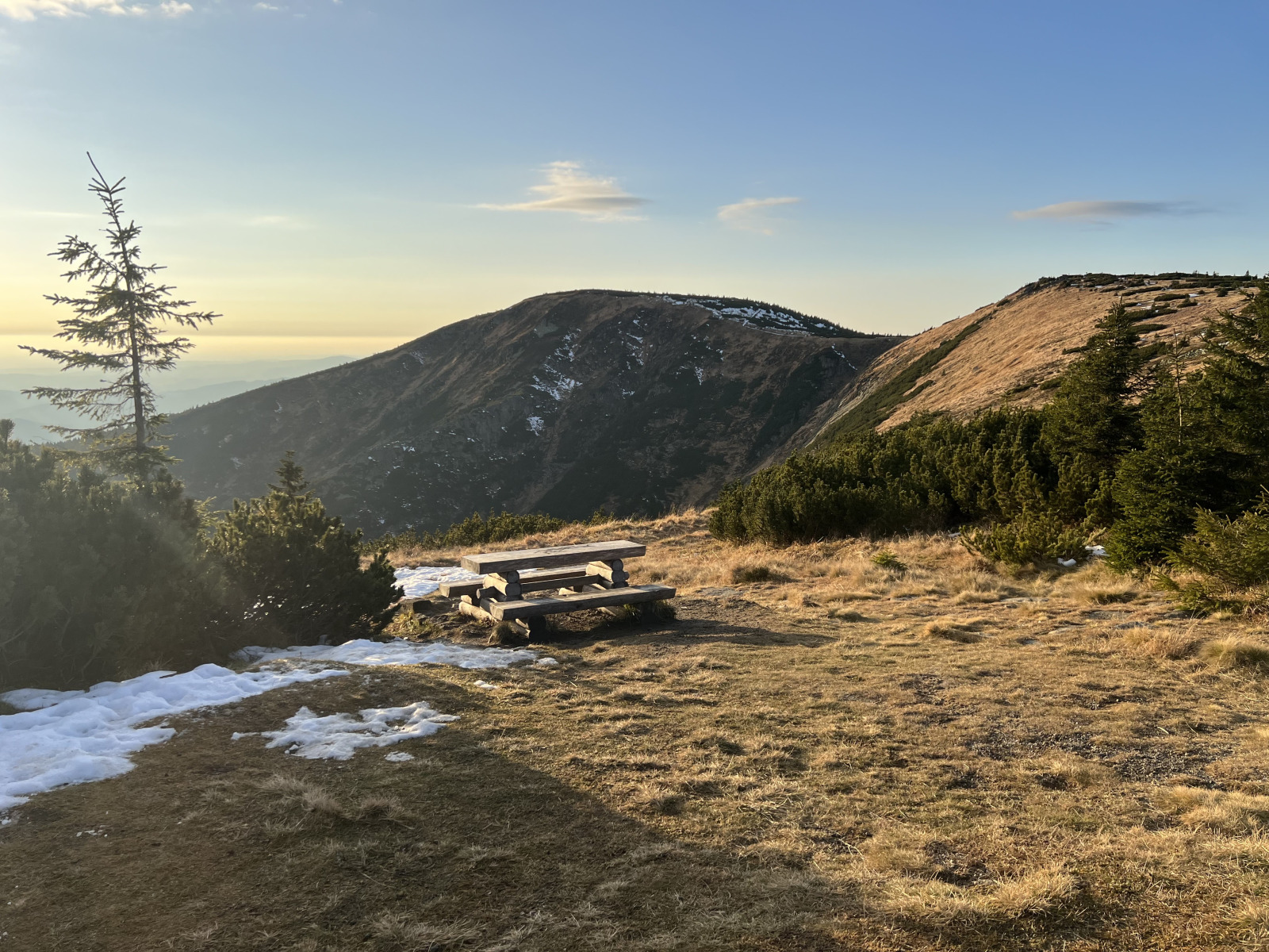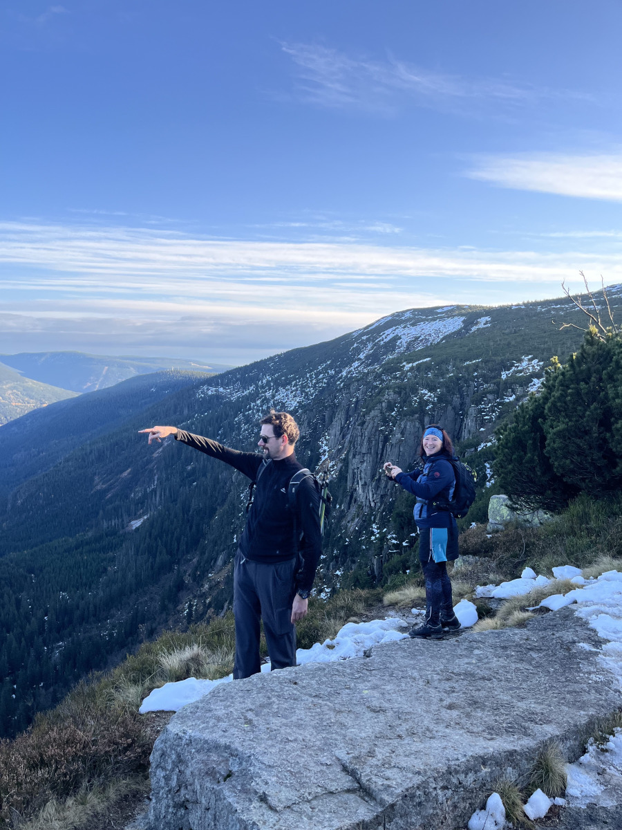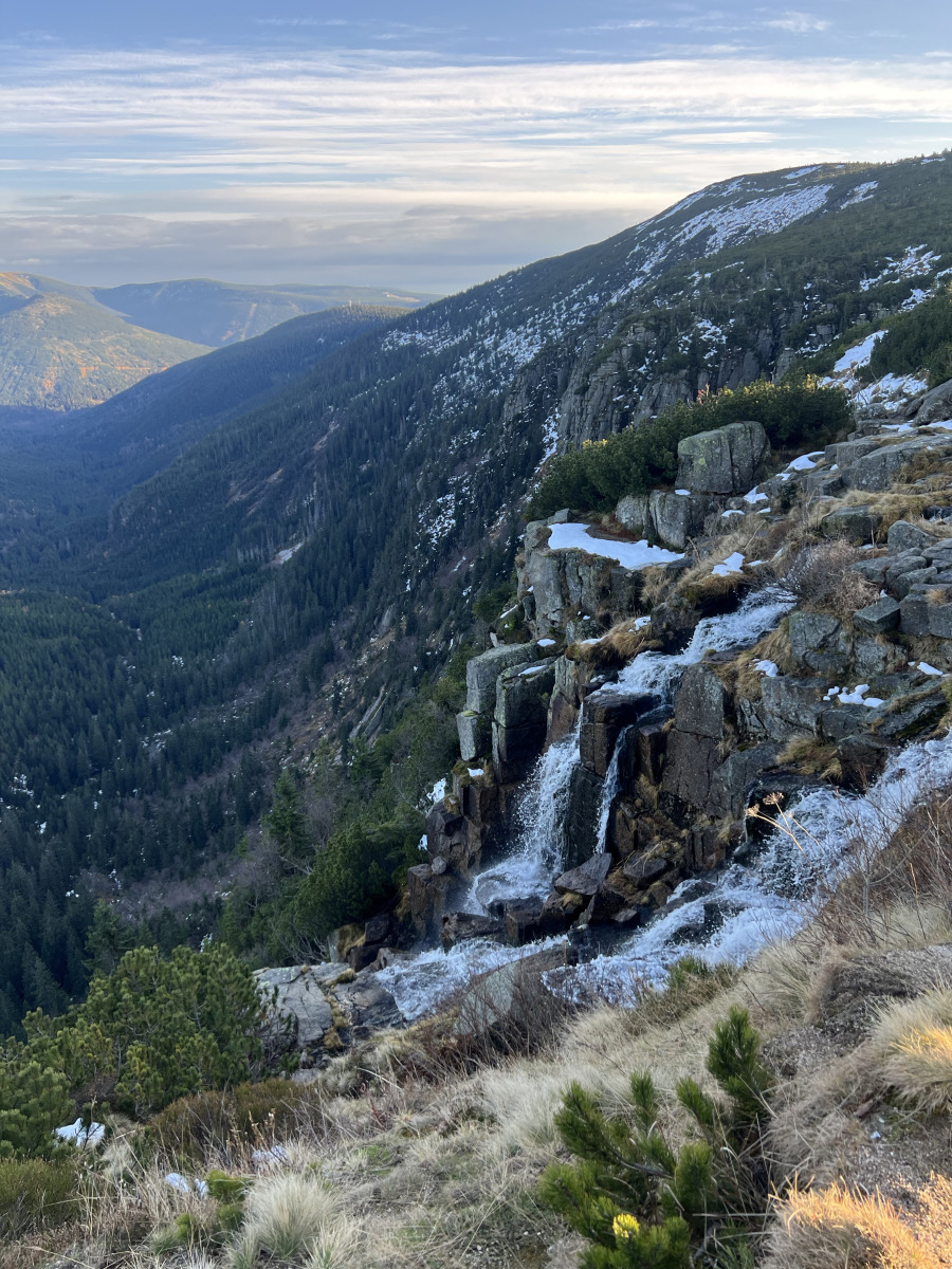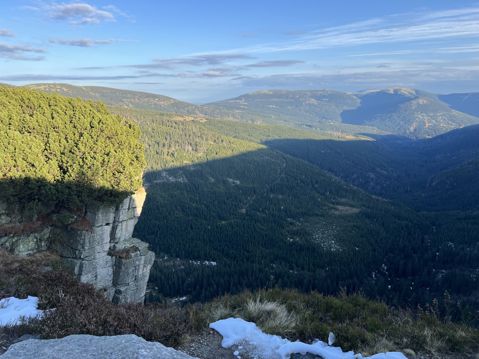 Nás čekaly dva hudební večírky, jeden nádherný prosluněný výlet i se sněhem ze Špindlu na Labskou, Pančavský vodopád, Vrbatku, Mísečky a už za tmy a deště zpátky do Špindlu, pak nedělní mlžná procházka a na cestě zpátky u Boleslavi jsme s Jirkou S. vyměnili naše holky za Moniku (a Frantu Hrušku). Povedené to bylo.