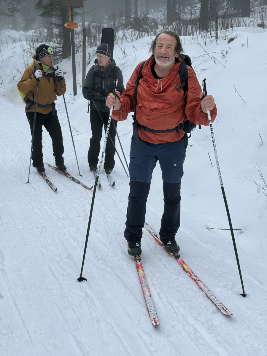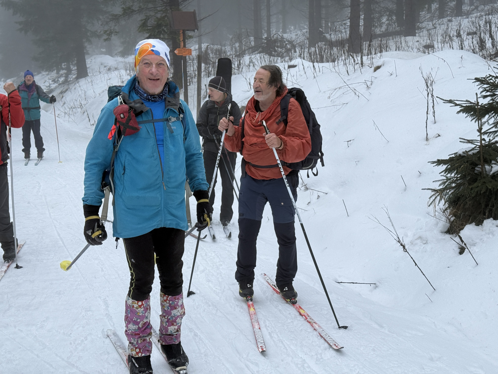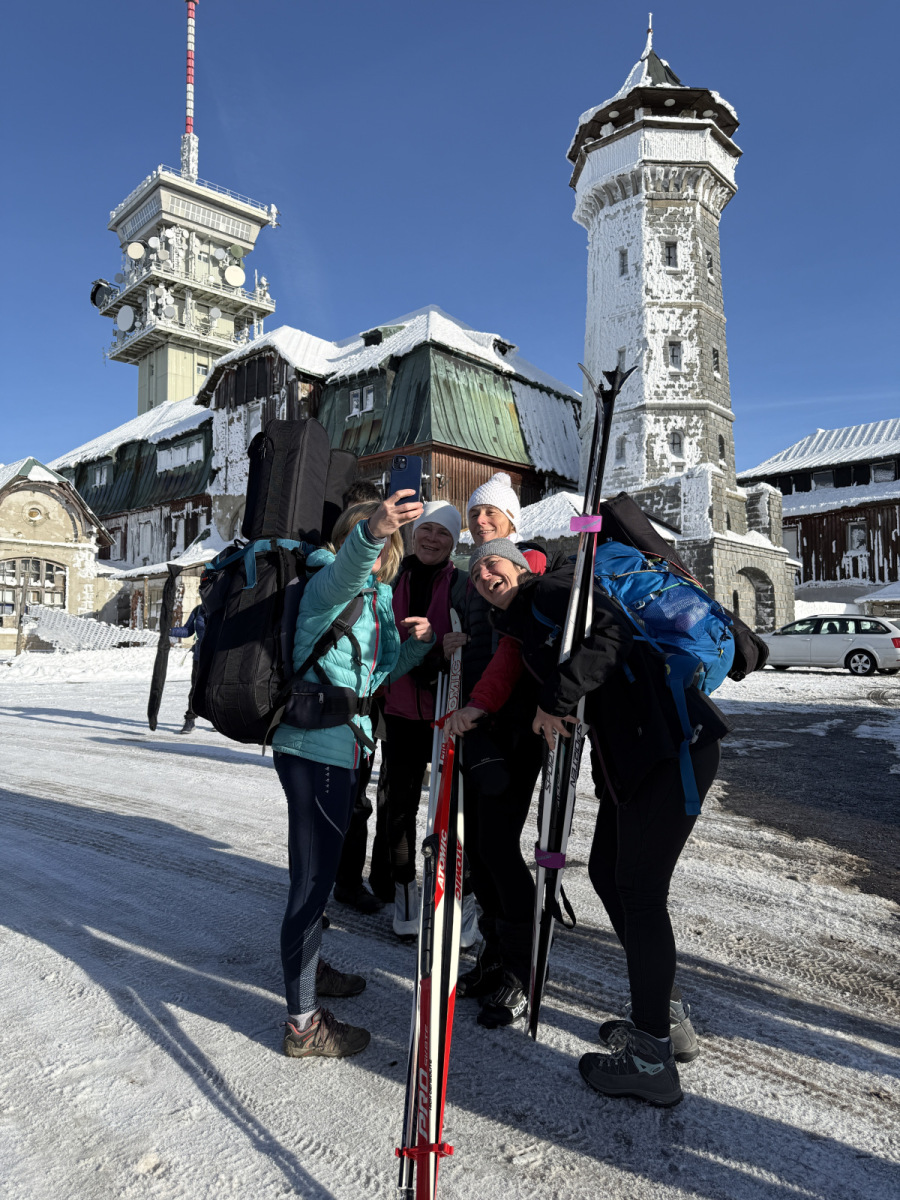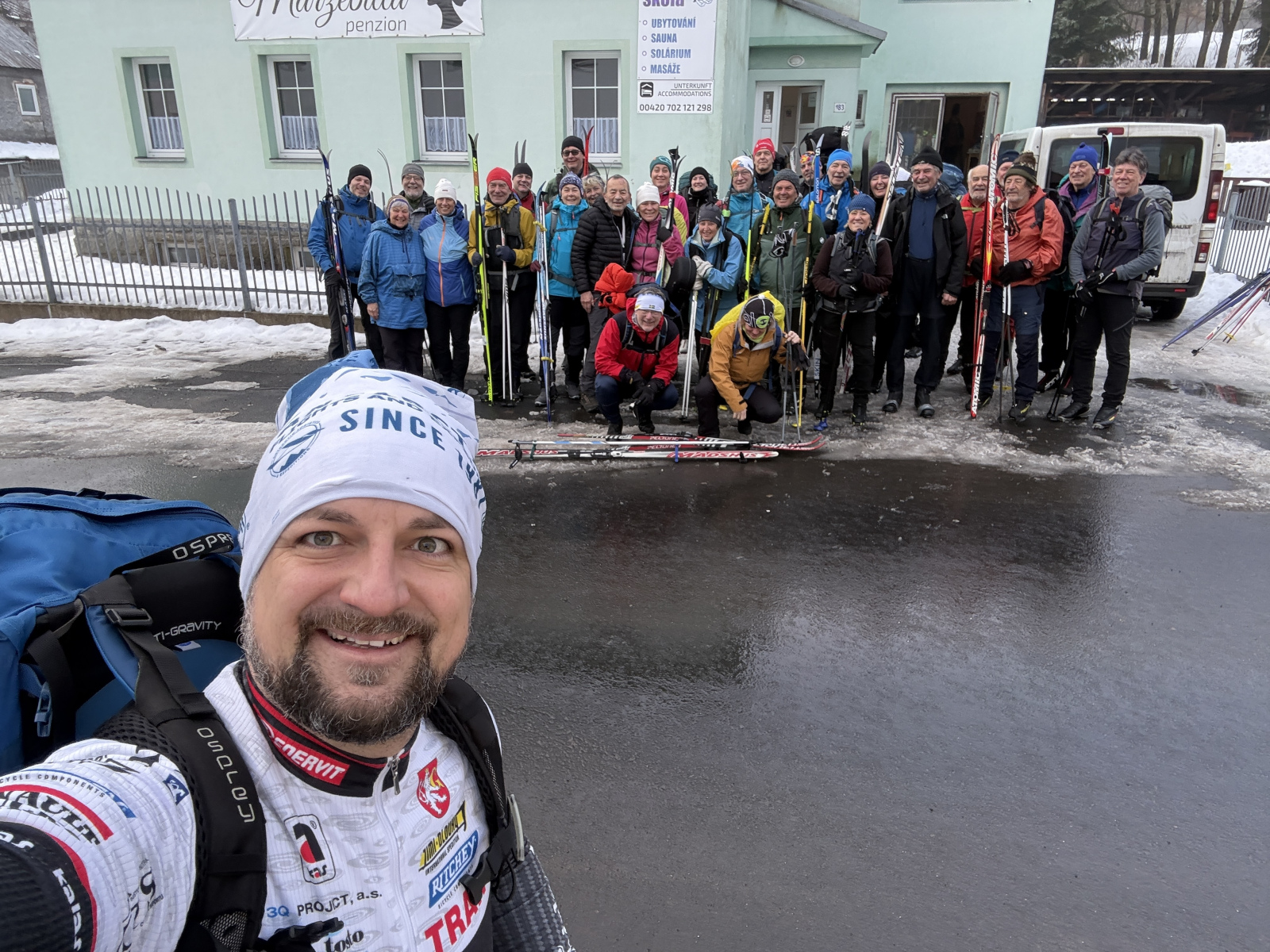 – Třetí den těžký výstup na hřebeny a krásná lyžovačka po Krušnohorské magistrále přes Jelení až na konečnou v Přebuzi..
