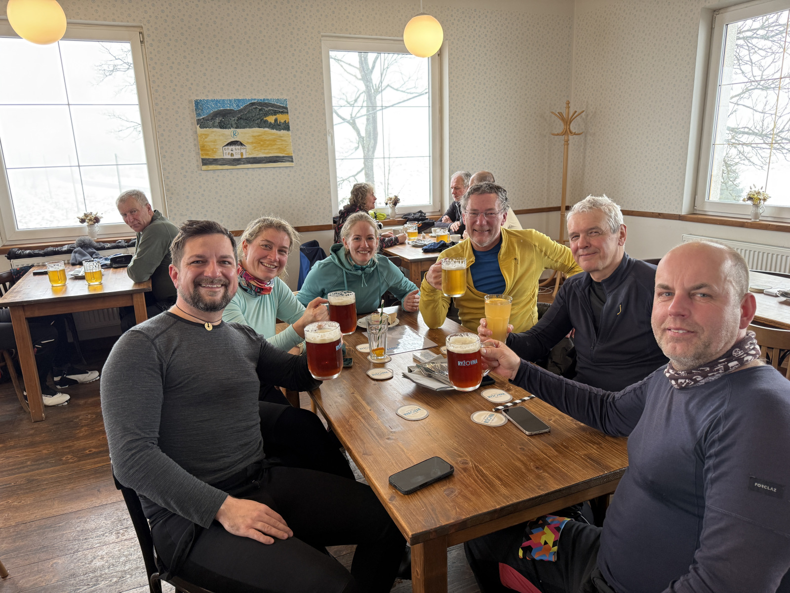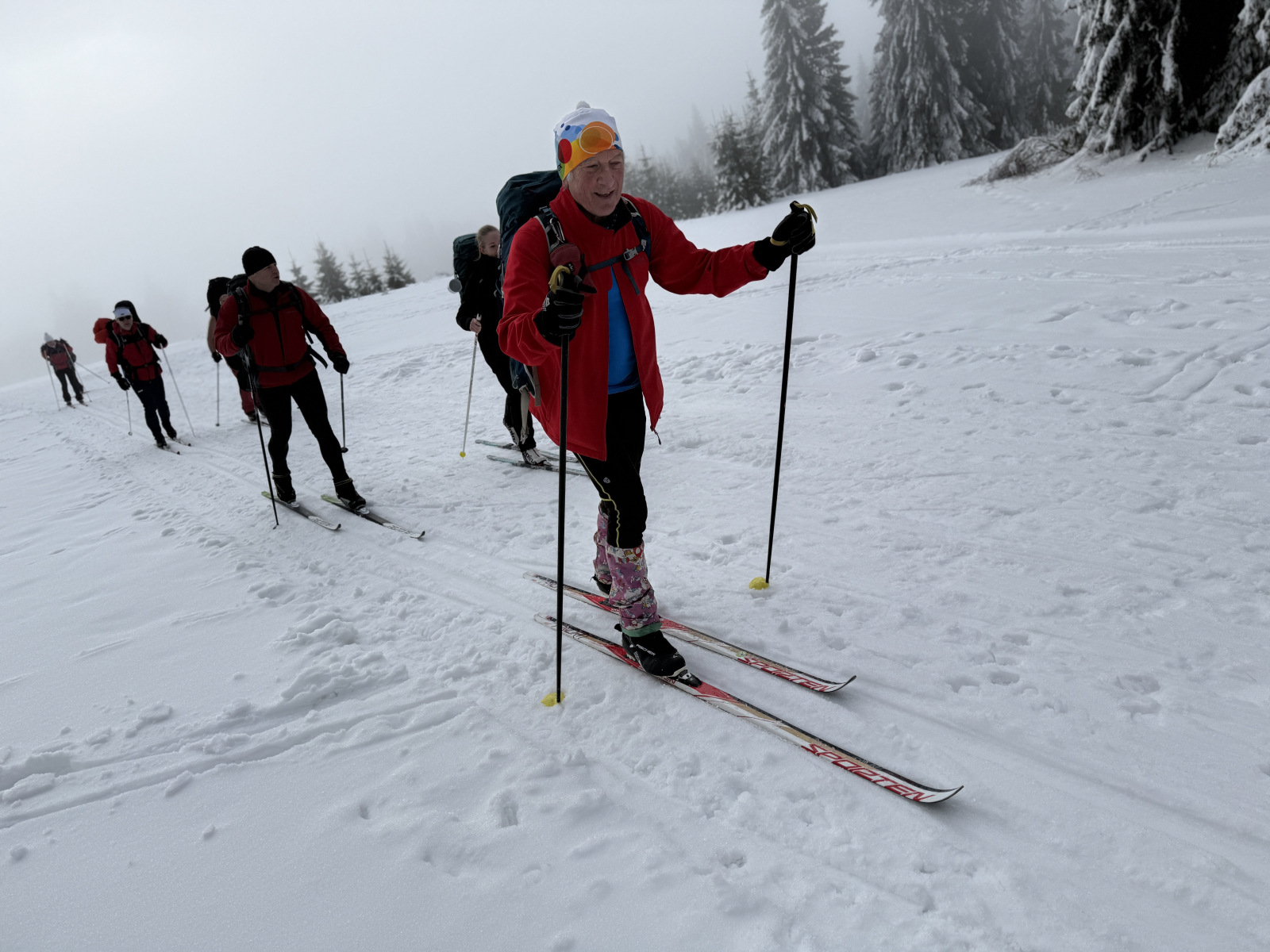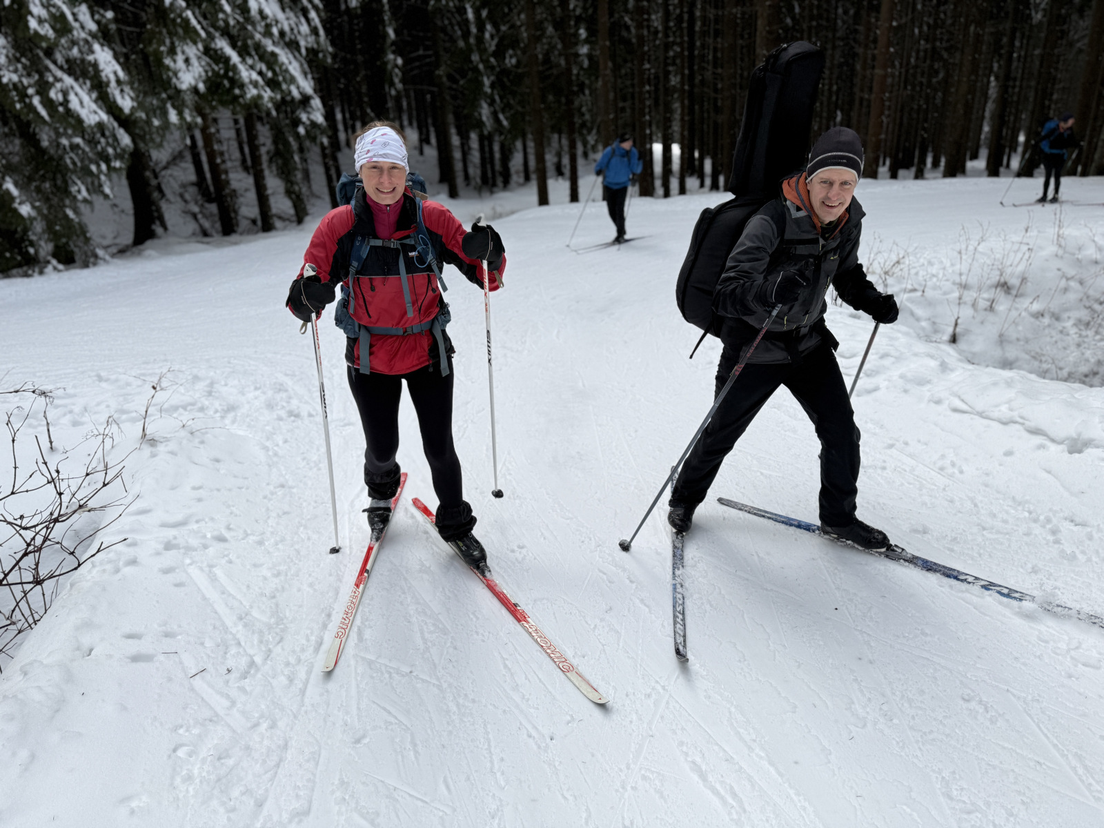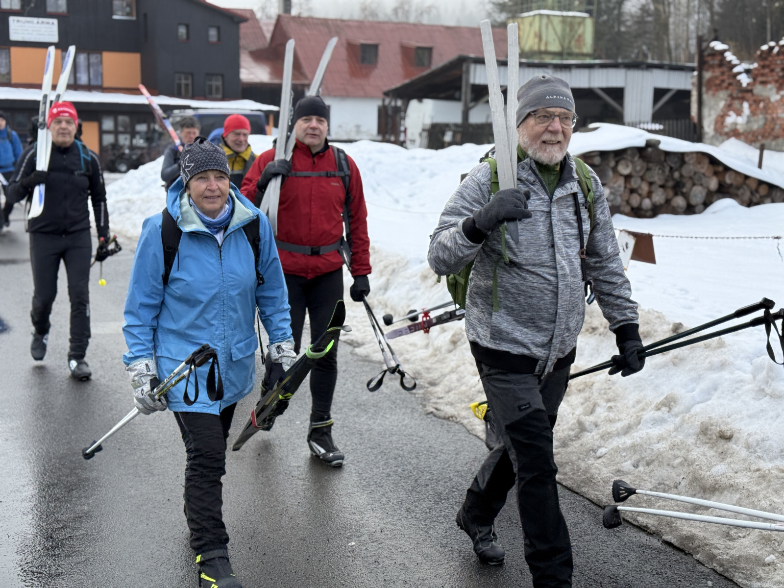 – Třetí den těžký výstup na hřebeny a krásná lyžovačka po Krušnohorské magistrále přes Jelení až na konečnou v Přebuzi..