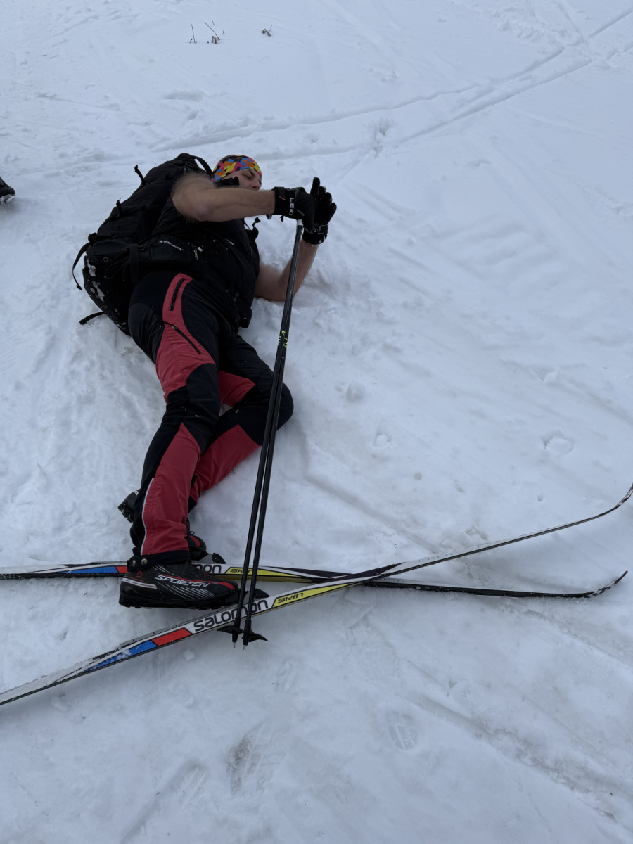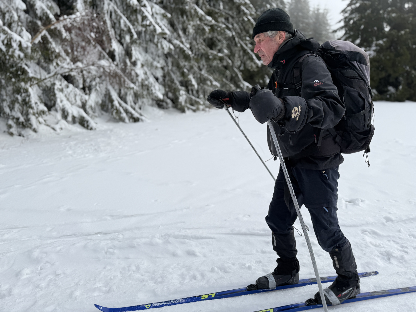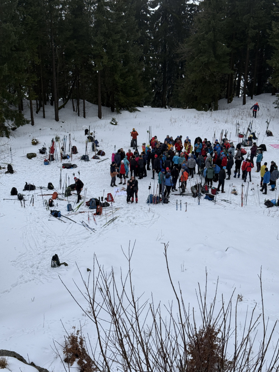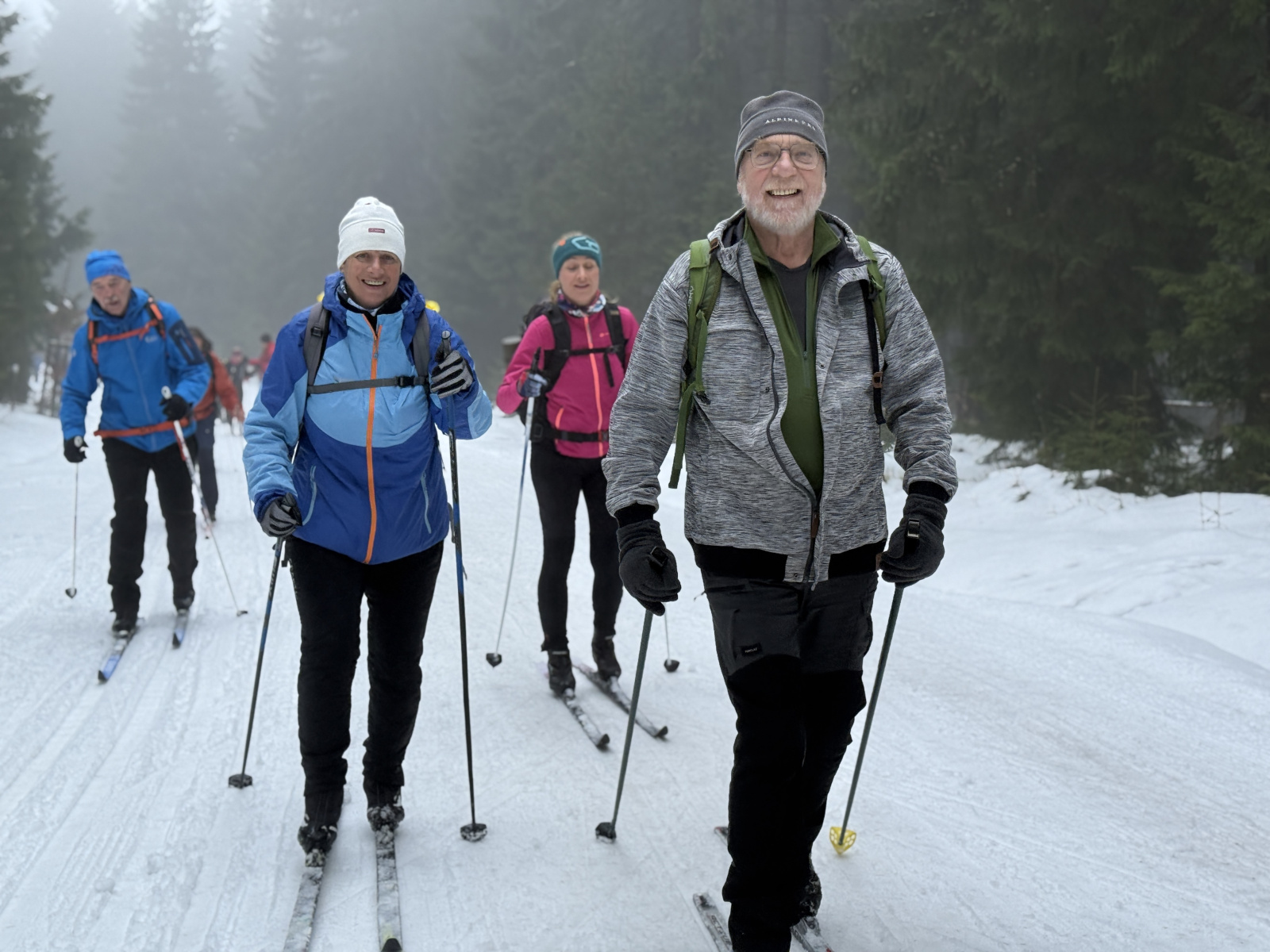 – Třetí den těžký výstup na hřebeny a krásná lyžovačka po Krušnohorské magistrále přes Jelení až na konečnou v Přebuzi..