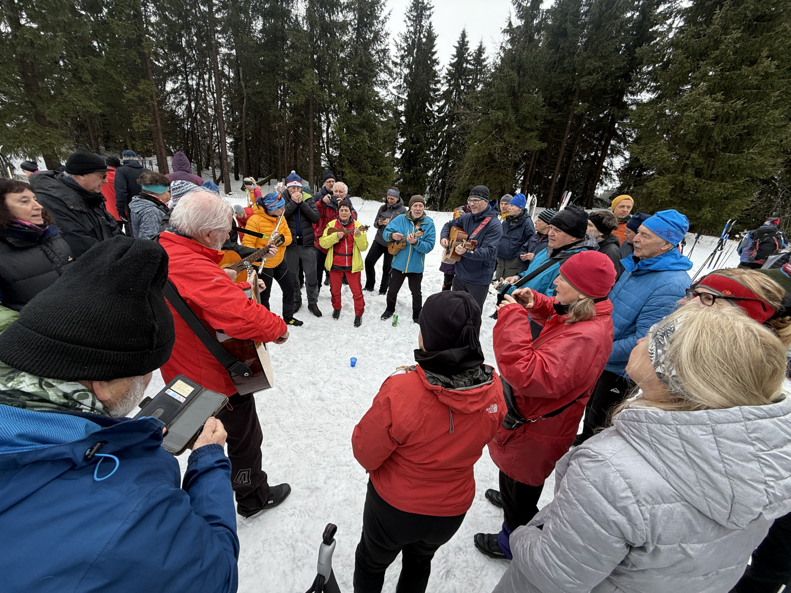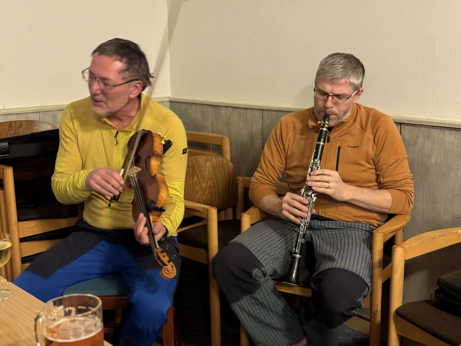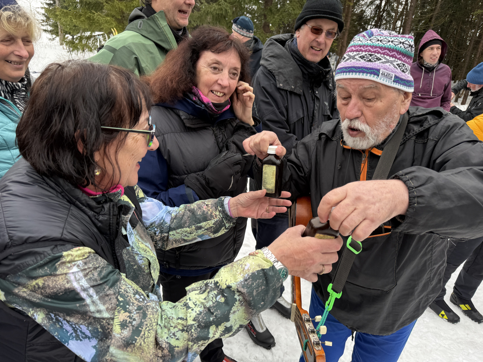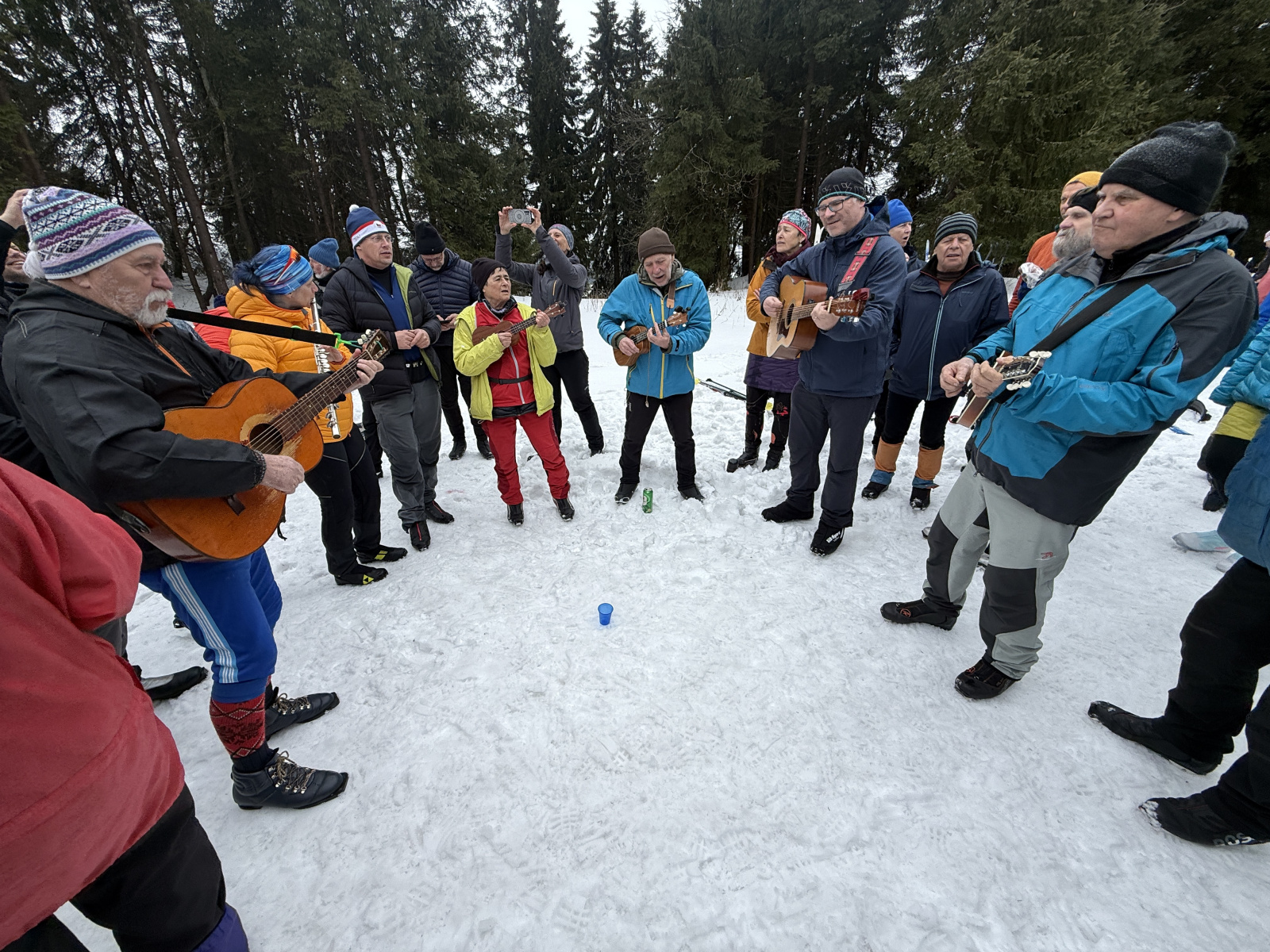 – Začalo to dosažením nejvyššího vrcholu Krušek – Klínovce pomocí busu, kde jsme si jako jediný houfec užili na letošní Spanilce slunce, pokračovalo brutálním šusovým sjezdem Klínovce až na Božák a končilo romantickým hledáním penzionu Lesanka  v Mariánské. Večer krásná večeře v jednom sále, poté hraní, zpěvy, tance (jedním z nejaktivnějších tanečníků byl šéf TAKU !) a přípitky v dalším sále….