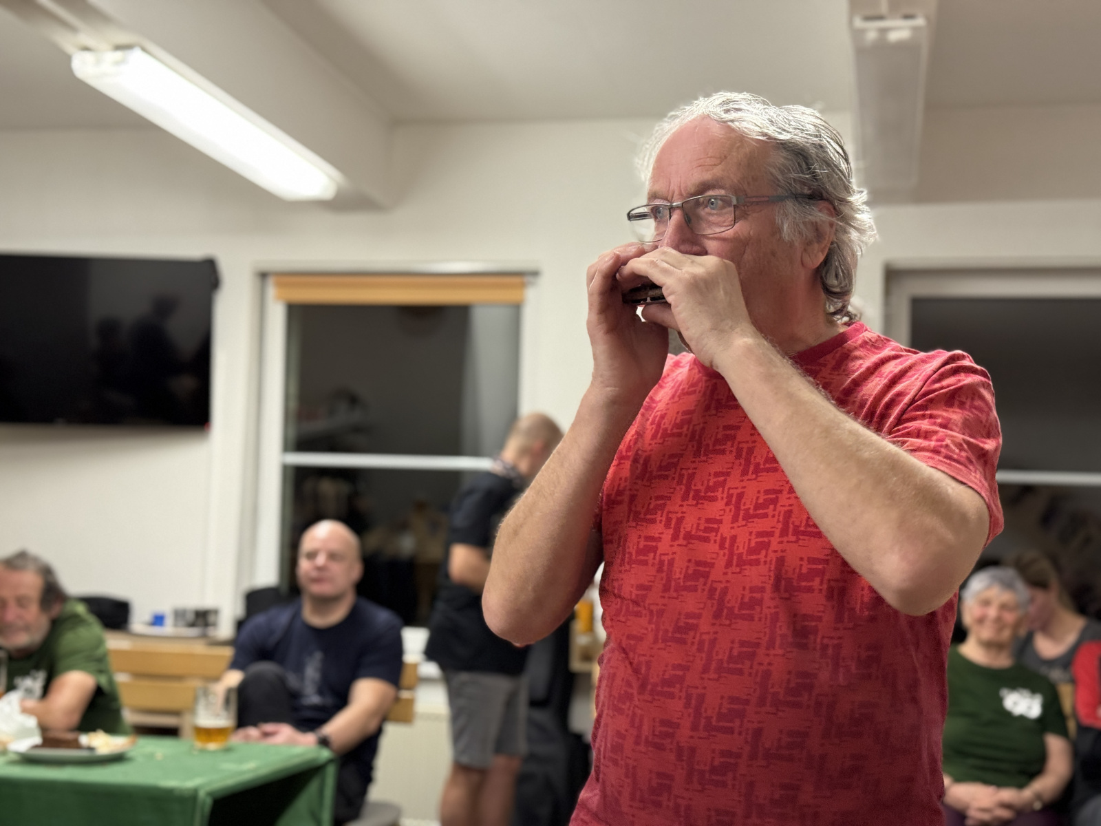 – Další den náročné probojování se na místo ustředění mezi skalami, opět písně a tance, měli jsme asi nejkrásnější a nejbohatší prostřený ubrus pro Déčko, včetně historického tradičního nápoje oblasti – Becherovky (vynalezen v r.1805 J.Becherem vs Varech), kterou