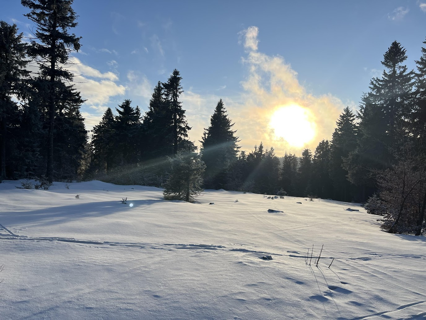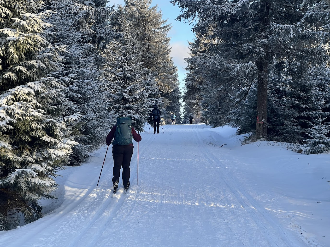 Mírný souvislý hřeben, dostatek sněhu (až na výjimky) a upravené stopy byly čirá běžkařská radost.
