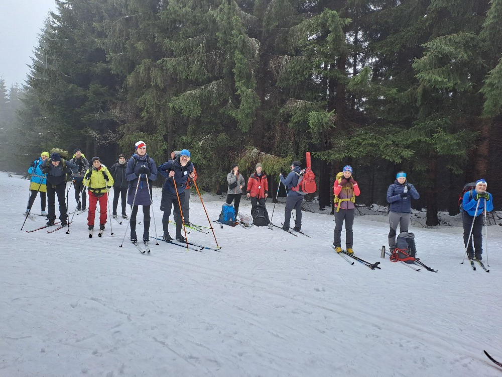 V sobotu po dobré snídani společně odchod do běžecké stopy k vysílači nad hřbitovem,